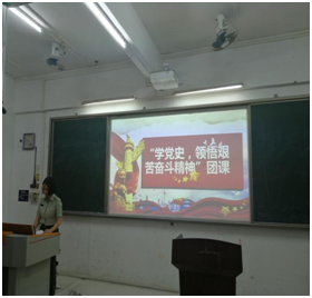 本次活动在全班团员齐唱《光荣啊,中国共青团》的歌声中拉开序幕,团支部书记黄港珍同学带领同学们进行了“学党史,领悟艰苦奋斗精神”主题团课学习。“欲知大事,必先为史”,党的百年历史饱经风霜磨难,从“小小红船”到“巍巍巨轮”,我们党创造了非凡业绩,带领全国各族人民开启了伟大复兴中国梦的新征程。我们作为实现第二个百年奋斗目标、建设社会主义现代化国家的主力军,更应该不忘历史,传承红色基因。黄港珍同学从我们身边的红色革命文化——南路革命讲起,让同学们近距离接触红色文化。同学们通过观看“华南抗日烽火故事连环画——老马村起义”以及采访革命老前辈马兰富的视频,领悟"开拓进取,敢为人先;求真务实,夯实基层;艰苦卓绝,信念坚定"老马起义精神。
