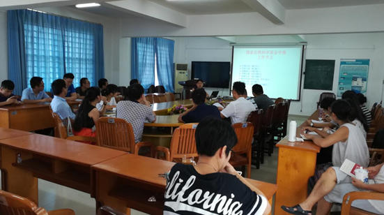 谢玲玲首先解读了国家自然科学基金项目申请政策、时间节点及申请指南,并重点向新老师介绍学院各方面的条件基础。随后,侯庆华、石红才和李君益等老师就国家基金的申报思路、心态以及如何解决申报过程中所面临的问题等方面与大家分享了各自的成功经验。最后,与会的老师们就项目申报各方面问题进行了积极的交流讨论。