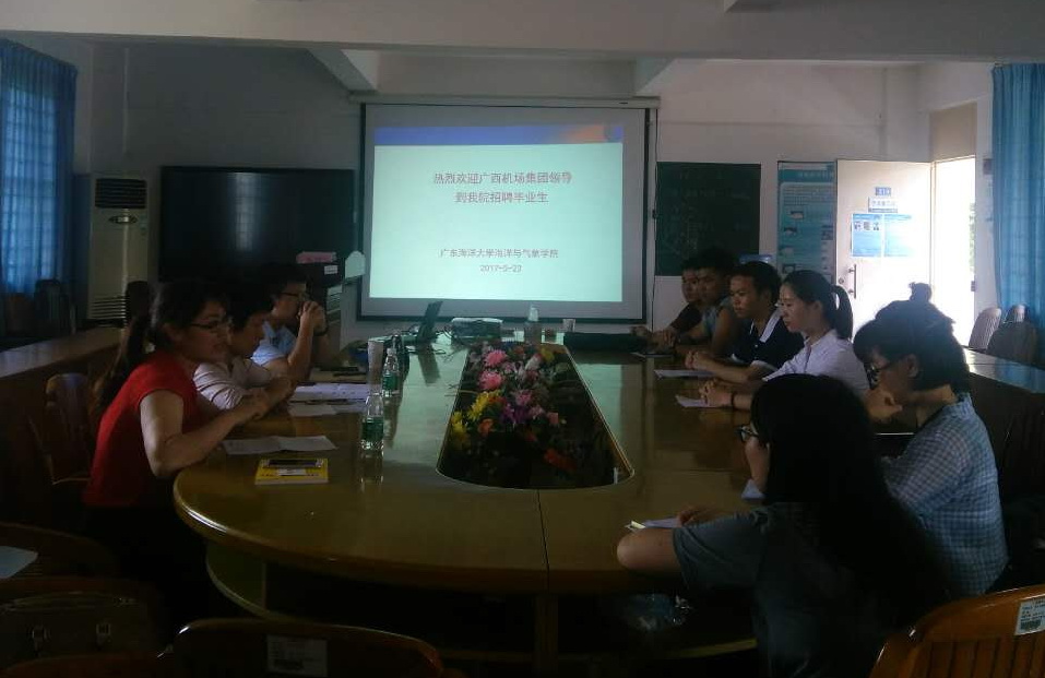 2017年5月23日下午,广西机场集团公司属下的百色机场和北海机场一行三人到英国威廉集团官网海博楼二楼学术报告厅对2017届大气科学毕业生进行面试。