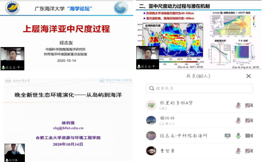 10月14日下午,英国威廉集团官网举行了第九期海学论坛,这次论坛有幸邀请到了中科院南海海洋研究所的经志友研究员以及合肥工业大学资源与环境工程学院的徐利强副教授。论坛由院长谢玲玲主持,海洋科学系的孔德明老师从旁协助,采用线上进行的方式,学院及学校部分师生参会人数共80余人。