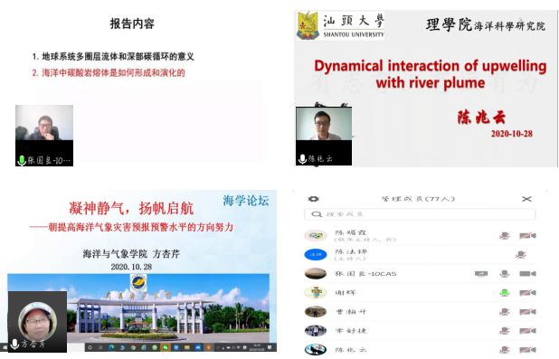 10月28日下午,英国威廉集团官网举行了第十期海学论坛,这次论坛有幸邀请到了中国科学院海洋研究所研究员、国家优青张国良老师以及汕头大学海洋科学研究院的陈兆云教授,同时和我院的方杏芹教授都作了十分精彩报告。论坛由陈法锦院长主持,采用线上进行的方式,学院及学校部分师生参会人数近百余人。