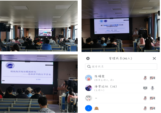 最后,张双尚和张雯皓博士都是广东海洋大学第一届海洋科学的本科毕业生,2014年考入河海大学进行硕博连读。作为往届的师兄和师姐,在报告之后的座谈会上,他们二人仔细地回答了师弟师妹们提出来的每一个问题,从大学生活的规划、备研读研的学习经验分享、职业规划等方面,师兄师姐都以自身经历做了详尽的分享。