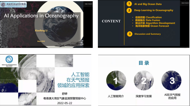 5月18日下午,李晓峰研究员作了题为“人工智能海洋学研究新进展”的学术报告。李晓峰研究员的报告主要围绕人工智能海洋学研究的新进展,旨在阐明人工智能技术在海洋学现象与过程的信息提取,海洋、大气现象的预报与建模等方面的最新研究成果。首先,李晓峰研究员以海洋环境卫星为切入点,清晰明了地回顾AI和大数据的发展历程,体现人工智能对地学和海洋领域研究的重要作用。紧接着,分别从信息挖掘、数据融合、算法开发、海洋现象预报四个方向提出信息提取方面包括中尺度涡、海洋内波、海冰、船只、溢油、台风造成水淹等;在轻量化预报方面包括小尺度内波、中尺度海平面变化以及大尺度赤道不稳定波等例子讲述深度学习在海洋学的应用。最后,李晓峰研究员对如今人工智能在应用领域的一些引起关注的问题研究进行了讨论,并且进行了总结和提出对与人工智能技术的展望。