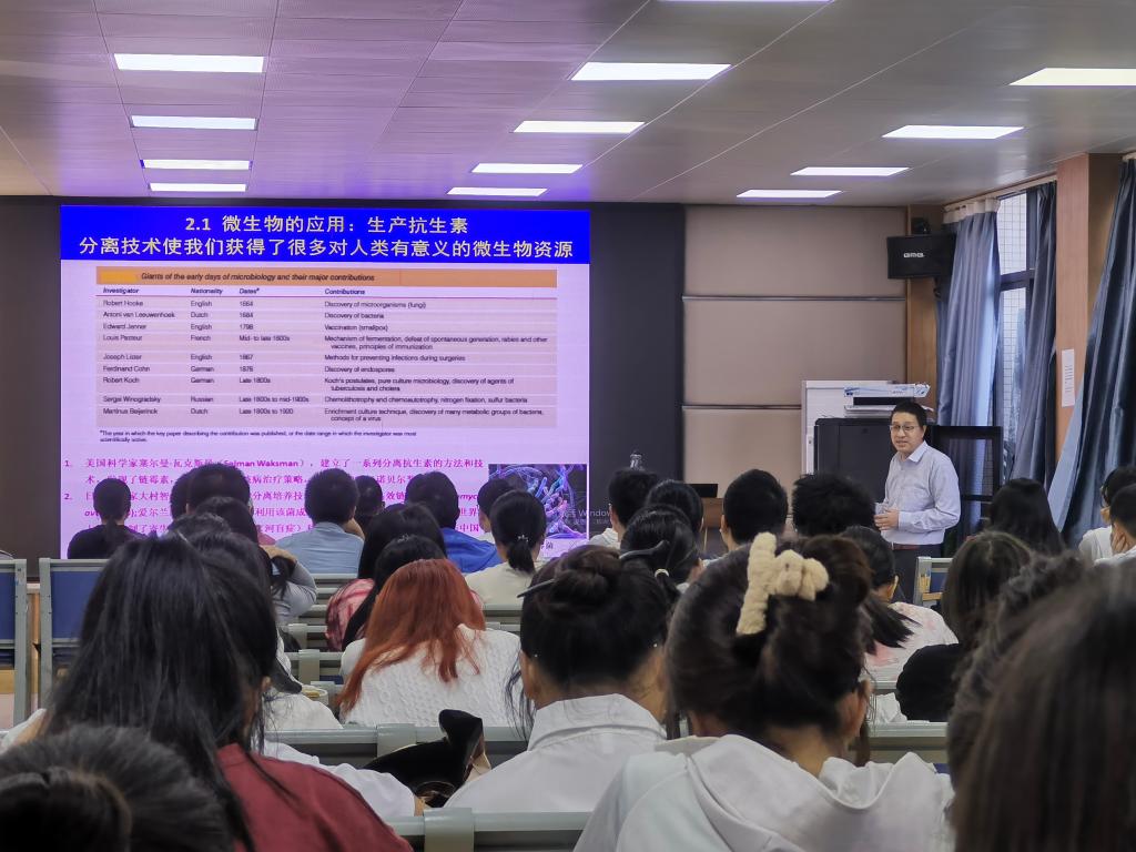 在讲座中,李香真教授向同学们介绍了微生物资源、应用及研究方法,并向同学们展示了其团队的研究方向,让我们认识到了微生物在自然界的重要性。研究人员通过分离技术获得许多对人类有用的微生物,挖掘出了许多可以利用微生物造福人类的地方。比如微生物农药,与传统的农药相比它不由化学合成,但具有比传统农药更加优良的功效。教授还讲了微生物在环境保护中的应用,利用废水、沼气等一些看起来无法利用的资源产生对环境保护的作用将其变废为宝。