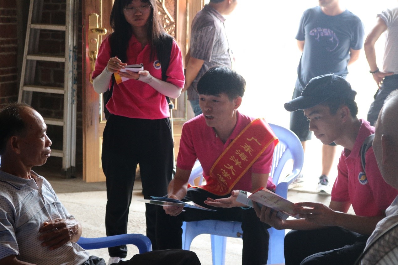 在调研过程中,团队成员走访廉江市教育局助学管理中心、雅塘镇政府、在雅塘镇集市摆摊宣传调研以及走访百丰山村村委会及其所管辖的天九车等几条自然村。