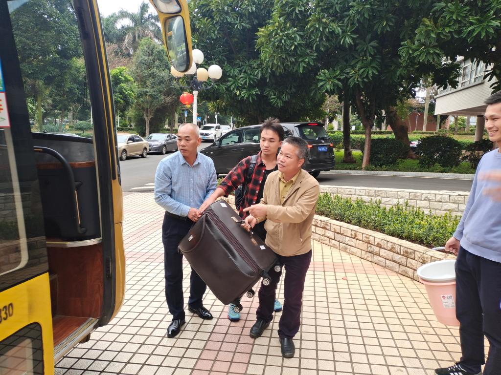 座谈会后,陈晓书记、林海峰老师到学校行政楼前欢送阿卜力克木•麦麦提敏同学前往集训。
