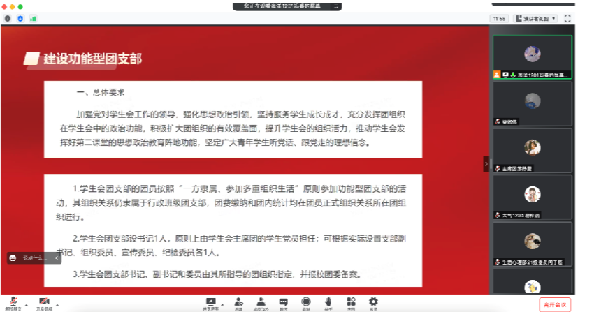 为深入贯彻落实习近平总书记关于青年工作的重要思想,推动高校学生会深化改革,加强党对学生会工作的领导,强化思想政治引领,坚持服务学生成长成才,充分发挥团组织在学生会中的政治功能,积极扩大团组织的有效覆盖面,提升学生会的组织活力,推动学生会发挥好第二课堂的思想政治教育阵地功能,坚定广大青年学生听党话、跟党走的理想信念。因疫情防控需要,英国威廉集团官网学生会功能型团支部成立大会于11月28日在腾讯会议线上召开,学院团委书记梁敬伟和学生会成员参加成立大会,会议由学院学生会执行主席冯睿主持。