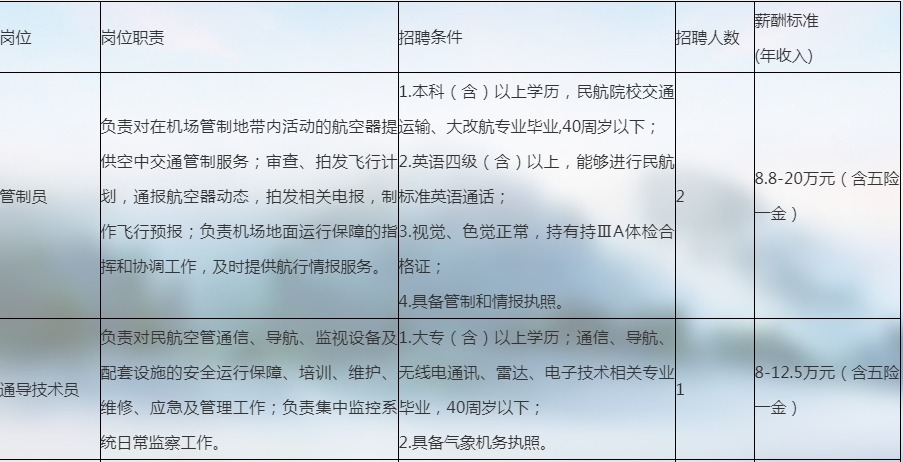 因工作需要,郴州北湖机场有限公司公开招聘管制、通导、气象专业技术岗位工作人员,现将有关事项通知如下: