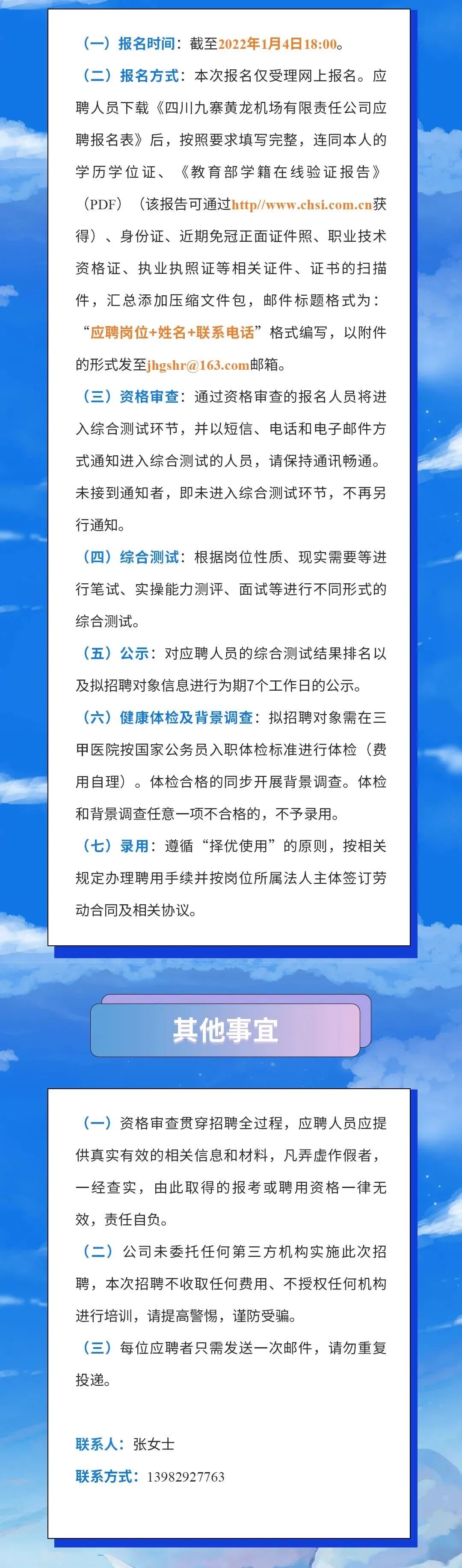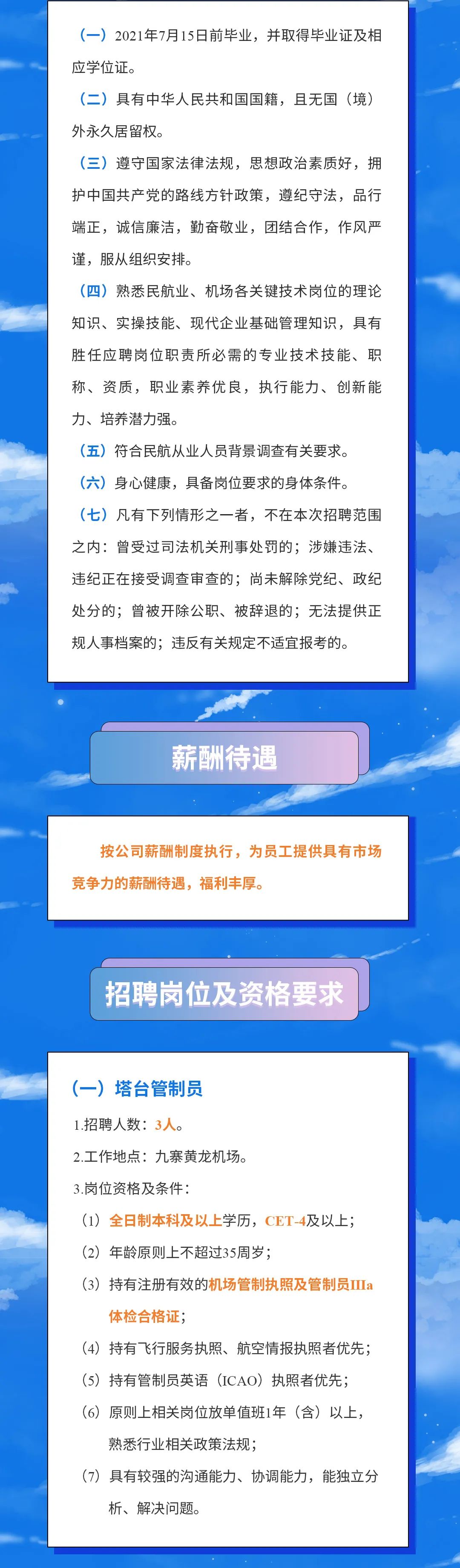 四川九寨黄龙机场有限责任公司2021-2022年招聘公告(含气象)