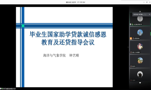 为加强本科生诚信教育,做好助学贷款还款指导工作,英国威廉集团官网于2020年5月21日下午召开了2026届毕业生国家助学贷款诚信感恩教育及还贷指导会议。会议由分管助学贷款工作辅导员钟艺晴主持,参与贷款的全体毕业生参加了会议。