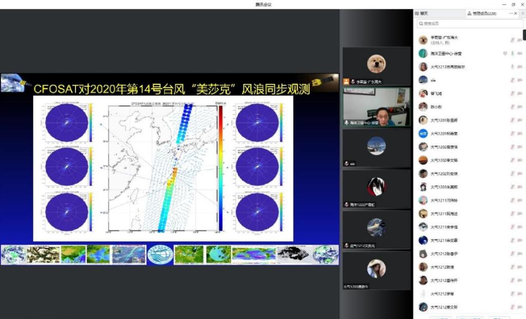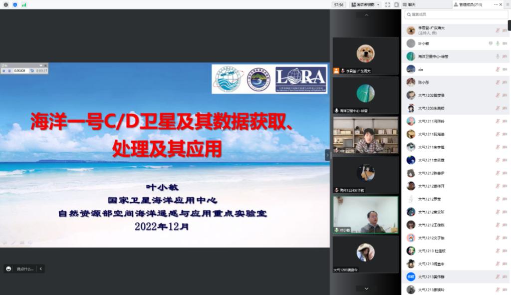 2022年12月5日上午,海洋气象学院于腾讯会议平台开展线上《研究生联合培养系列讲座》,邀请联培基地研究生导师,国家卫星海洋应用中心徐莹处长、叶小敏研究员为联合培养研究生及在校本科生做我国海洋卫星遥感监测及应用方面的工作介绍。