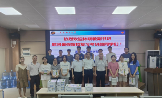 学校和学院非常重视学生的考研工作。去年7月25日上午,学校党委副书记林晓敏在学生工作部部长肖文辉和学院书记陈晓的陪同下,到学院考研自习室亲切看望慰问在校考研复习的学生与考研的同学亲切交流,了解大家的复习情况,通报了2022届考研成绩,强调考研是实现自我梦想和抱负的重要途径,希望同学们保持积极的备考心态,不断完善自我、提升自我,以升学深造实现自我最大化发展(广东海洋大学新闻网。学院召开考研动员会议和考前动员会,谢玲玲院长鼓励同学们认真备考,陈晓书记为同学们打气,为学生送上慰问品和包含考试、防疫物品的爱心小礼包,订了三辆校车将同学们送到考场,谢玲玲为同学们送行。