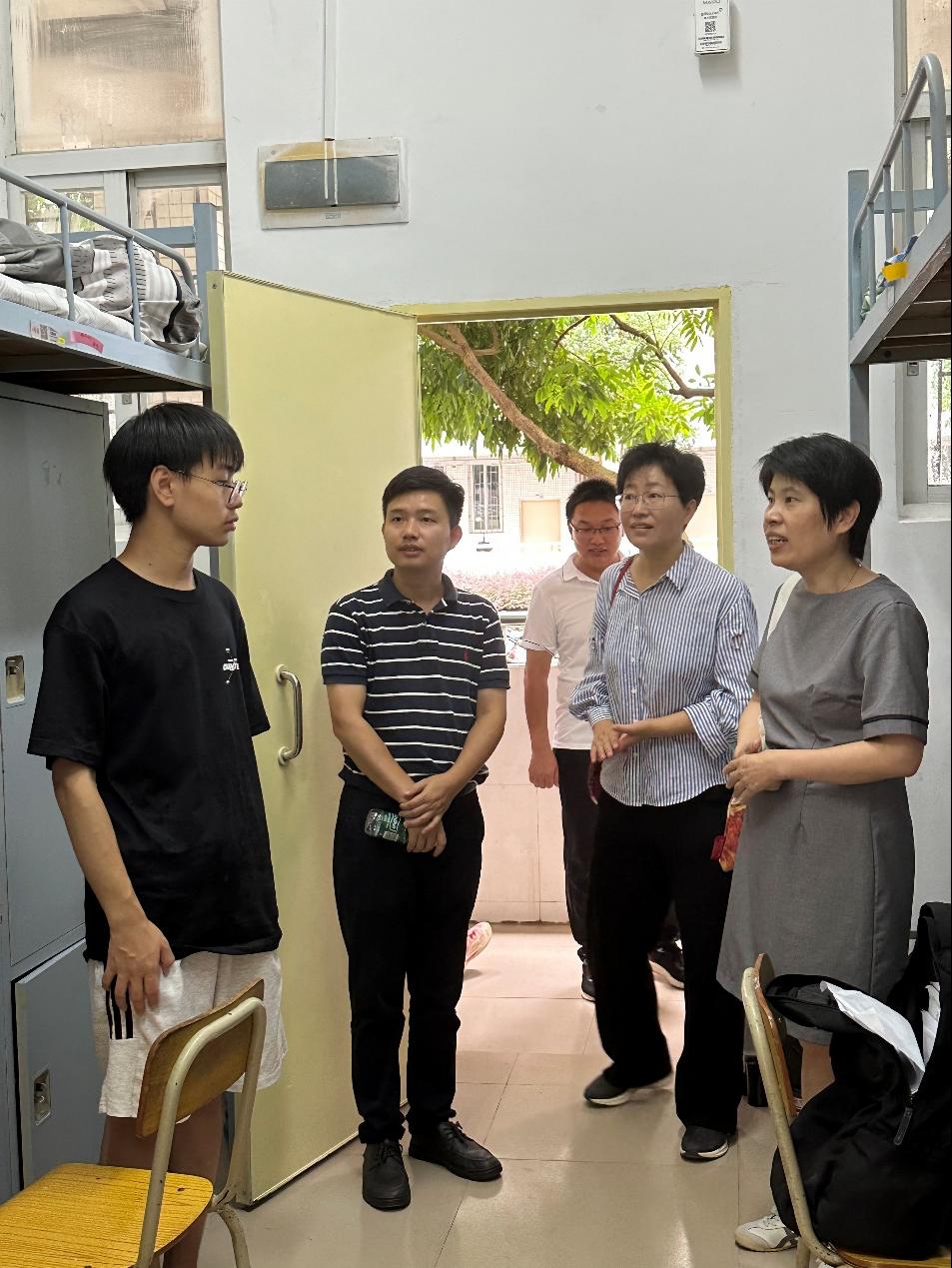 走访过程中,学院领导、老师与新生们亲切交流,询问同学们报到以来的生活、学习情况,倾听同学们的心声,了解同学们的诉求。“同学们,你们好呀!”“你们都来自哪里呀?”“到校第一天,还适应吗?”“未来四年有什么打算?”“有什么困难需要我们帮助解决吗?”...... 一句句真挚的问候迅速拉近了师生之间的距离;学院领导和老师叮嘱新生要提高安全意识、加强团结、互帮互助、积极调整、主动适应、遇到困难及时与辅导员老师联系沟通;同时,勉励新生们在人生的新阶段新起点,怀抱梦想、脚踏实地,以饱满的热情投入到大学的学习和生活中去,努力提高专业素养和个人综合素质,以自身拼搏奋斗描绘无悔青春画卷。