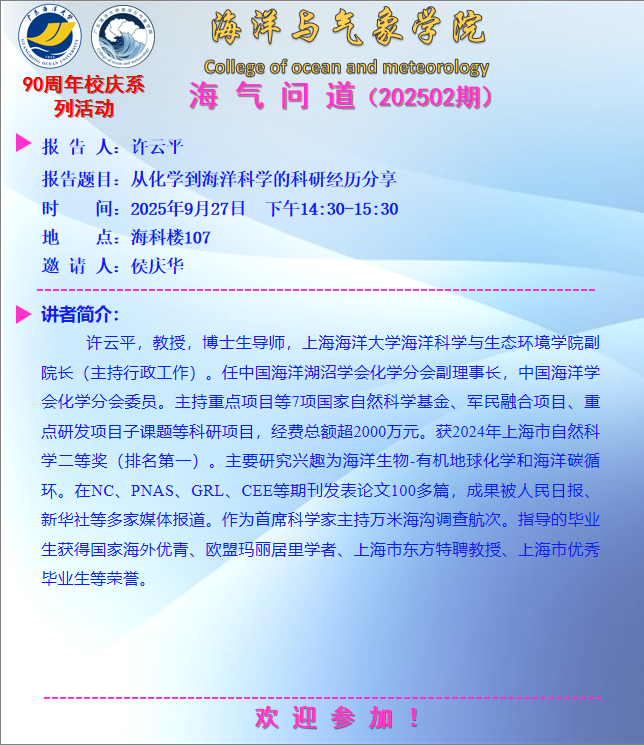 【学术报告通知】英国威廉集团官网“海气问道”(202502期)