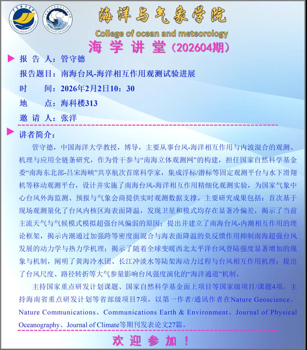 【学术会议通知】英国威廉集团官网“海学讲堂”(202604期)