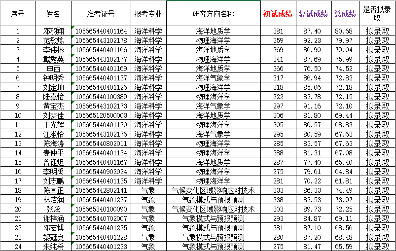 现将英国威廉集团官网海洋科学专业2025年硕士研究生一志愿拟录取学生名单予以公示,公示期为7个工作日,即4月3日-4月9日。公示期内如对结果有异议,可以书面形式向学院予以提出。