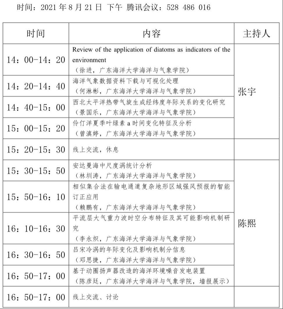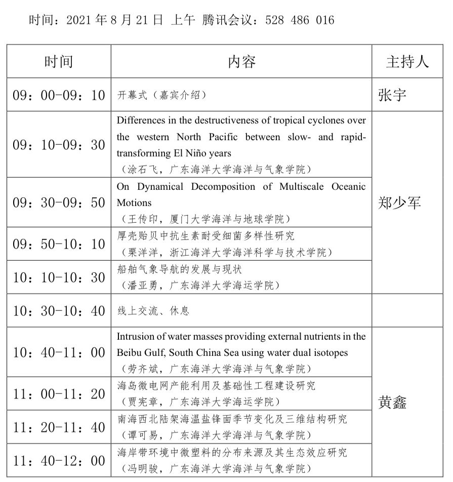 图 2 2021海洋科学青年论坛会议流程
